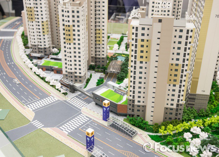 (서울=포커스뉴스) 20일 오전 서울 송파구 래미안 하우스에 개관한 래미안 과천 센트럴 스위트 견본주택에 전시된 모형도.