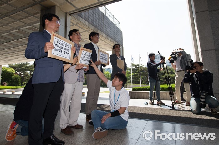 (서울=포커스뉴스) 전국언론노동조합이 MBC파업 개입 국정원 고소 및 손해배상 청구 관련 고발장 접수를 위해 20일 오전 서울중앙지방검찰청으로 들어가기 전 기자회견을 하고 있다.
