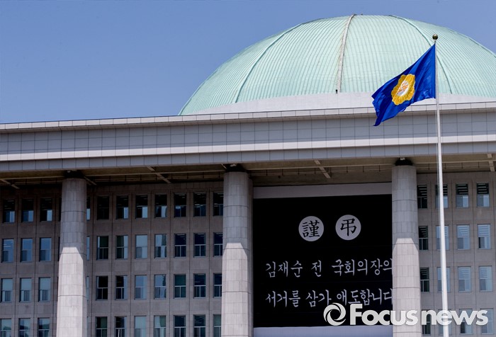 | △ 국회 본청에 걸린 김재순 전 국회의장 애도 현수막 |