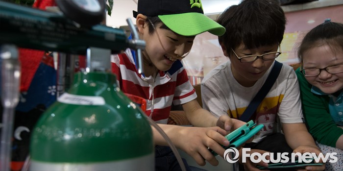 (대전=포커스뉴스) 아타 사프달 옥시레킷벤키저 대표가 20일 오후 대전 유성구 아드리아호텔에서 옥시의 가습기 살균제 제품 피해자와 면담을 마련한 가운데 피해 어린이들이 핸드폰 게임을 하고 있다.