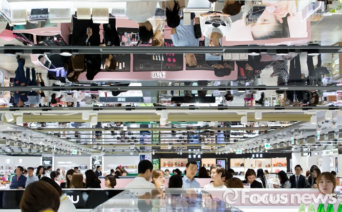 (서울=포커스뉴스) 두타면세점이 프리오픈한 20일 오후 서울 중구 두산타워 면세점에서 관광객과 소비자들이 매장을 둘러보고 있다.