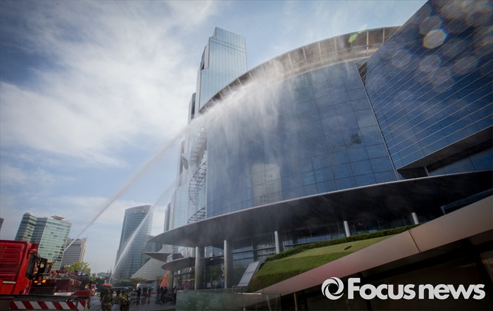 (서울=포커스뉴스) 20일 오후 서울 강남구 코엑스에서 열린 '2016 재난대응 안전한국훈련'에 참여한 소방대원들이 테러대응훈련을 펼치고 있다.