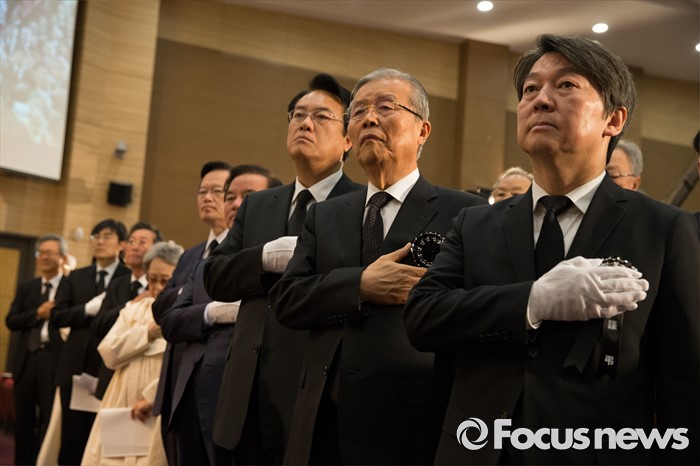 | △ 김재순 전 국회의장 영결식 참석한 3당 |