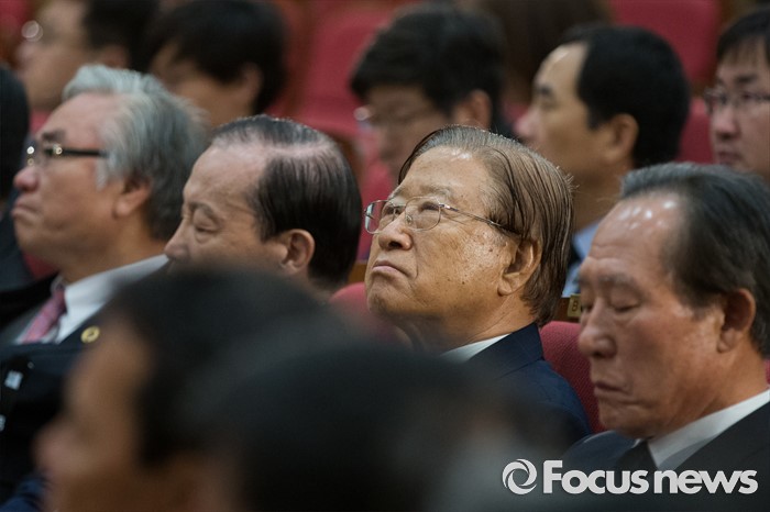 (서울=포커스뉴스) 21일 오전 서울 여의도 국회에서 엄수된 故 김재순 전 국회의장 국회장 영결식에서 한 참석자가 생각에 잠겨 있다.