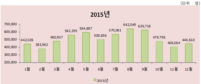 2015년 기준으로 보면, 월별 진료인원은 8월에 64만2000명, 9월은 62만7000명, 그리고 봄철인 5월 59만5000명, 4월 56만2000명 순이었다.