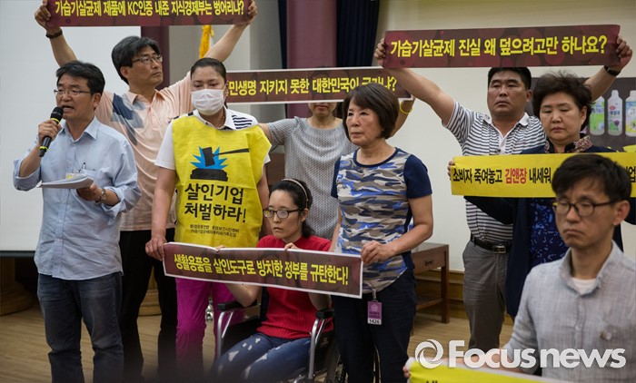 (서울=포커스뉴스) 가습기살균제 피해자와 가족모임(가피모)이 22일 오후 서울 영등포구 국회의원회관에서 열린 '2016 가습기살균제피해자 및 가족모임 법인창립총회'에서 특별법 재정과 책임자 처벌을 촉구하고 있다.