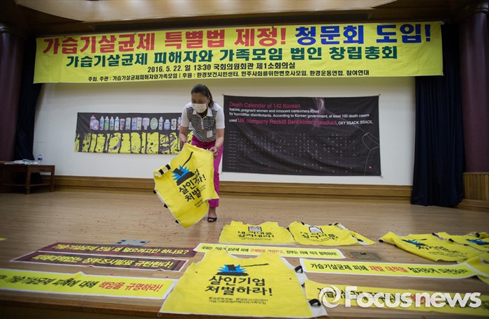 (서울=포커스뉴스) 22일 오후 서울 영등포구 국회의원회관에서 열린 '2016 가습기살균제피해자 및 가족모임 법인창립총회'에