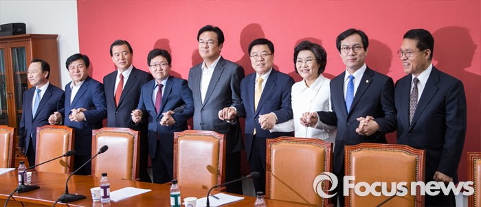 그는 "정치는 말 그대로 잘못된 것을 바로 잡아 다스린다는 의미"라며 "뻔하고 막연한 얘기라 생각마시고 다 같이 방법을 찾아보자"고 주장했다.정진석 새누리당 원내대표와 김광림 정책위의장, 김용태 혁신위원장을 비롯한 비대위원들이16일 오전 서울 여의도 국회에서 상견례를 갖고 취재진을 향해 포즈를 취하고 있다. 왼쪽부터 홍일표, 이진복, 비대위원, 홍문표 사무총장 대행, 김용태 혁신위원장, 정진석 원내대표, 김광림 정책위의장, 이혜훈, 김영우, 정운천 비대위원. 2016.05.16 김흥구 기자