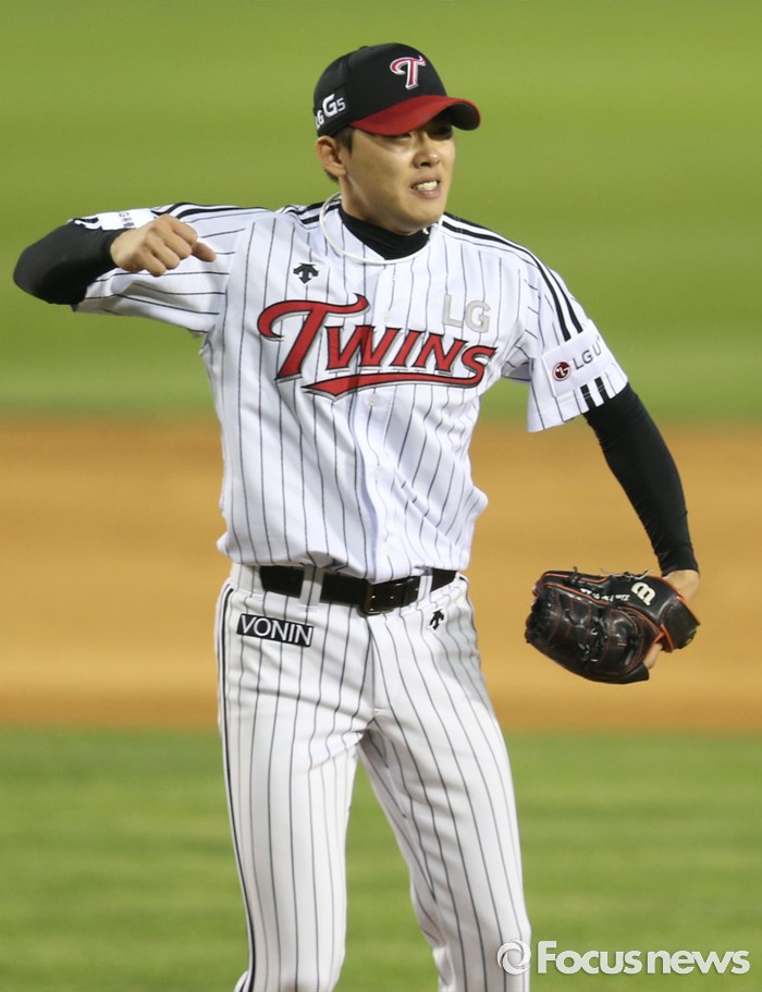 | △ 위기를 넘기며 세이브 챙긴 LG 임정우 |