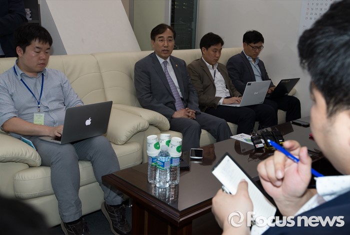 (세종=포커스뉴스) 이석준(왼쪽 두번째) 국무조정실장이 23일 오후 세종시 정부세종청사 국무총리비서실·국무조정실 기자실에서 출입기자단과 국정현안에 대한 간담회를 갖고 있다. 이 국조실장은 상시 청문회법과 관련해 앞으로 행정부 공무원들의 업무 위축 우려 가능성이 높다고 밝혔다.