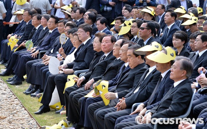 (김해=포커스뉴스) 23일 오후 경남 김해 봉하마을에서 엄수된 故 노무현 전 대통령 서거 7주기 추도식에 참석한 인사들이 고인을 기리고 있다.
