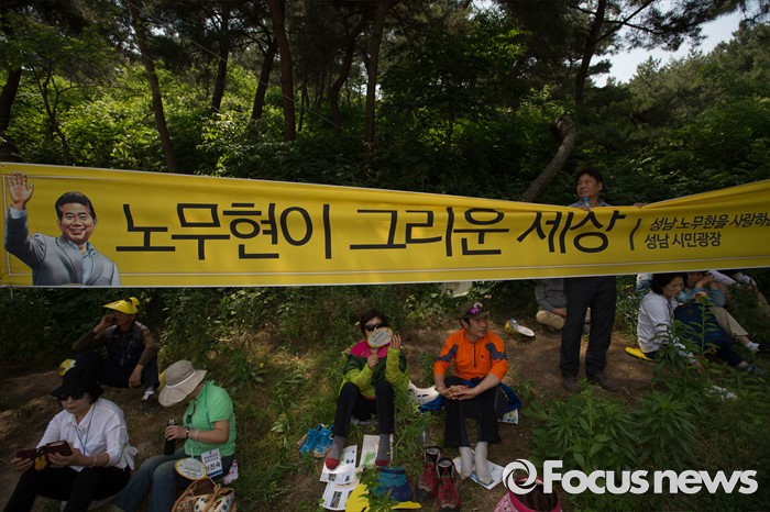 (김해=포커스뉴스) 23일 오후 경남 김해시 진영읍 봉하마을에서 열린 '故 노무현 전 대통령 서거 7주기 추도식'에서 故 노무현 전 대통령 묘역을 찾은 추도객들이 추도식에 참석하고 있다.