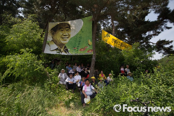 (김해=포커스뉴스) 23일 오후 경남 김해시 진영읍 봉하마을에서 열린 '故 노무현 전 대통령 서거 7주기 추도식'에서 故 노무현 전 대통령 묘역을 찾은 추도객들이 추도식에 참석하고 있다.