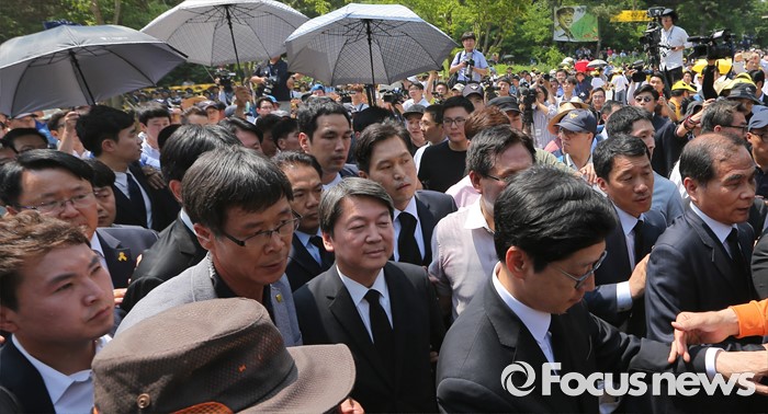 (김해=포커스뉴스) 23일 오후 경남 김해 봉하마을에서 엄수된 故 노무현 전 대통령 서거 7주기 추도식에 안철수 국민의당 상임공동대표가 참석하고 있다.