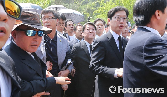 (김해=포커스뉴스) 23일 오후 경남 김해 봉하마을에서 엄수된 故 노무현 전 대통령 서거 7주기 추도식에 안철수 국민의당 상임공동대표가 참석하고 있다.