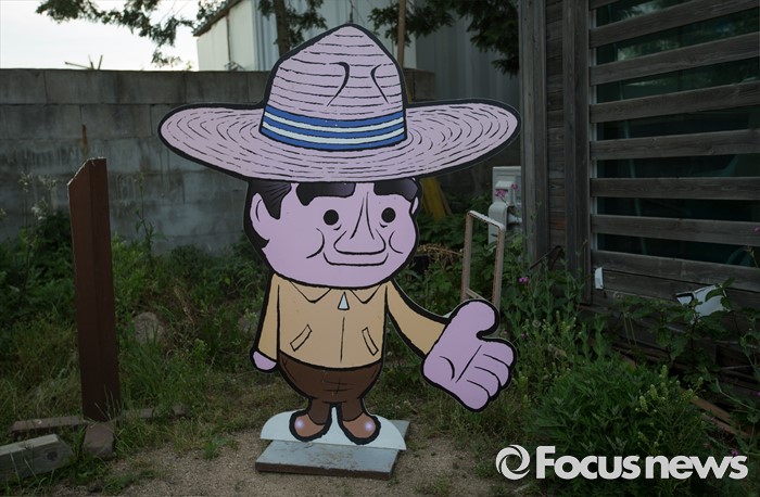 (김해=포커스뉴스)故 노무현 전 대통령 서거 7주기인 23일 오후 경남 김해시 진영읍 봉하마을 '추모의 집' 앞에 노무현 전 대통령의 캐리커쳐 모형이 놓여져 있다.