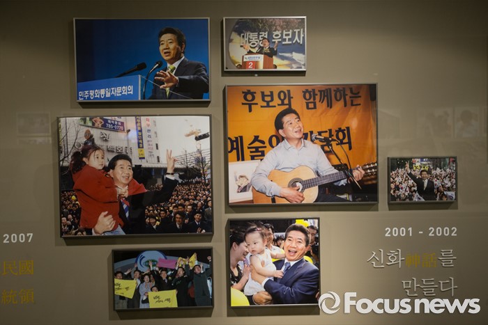 (김해=포커스뉴스)故 노무현 전 대통령 서거 7주기인 23일 오후 경남 김해시 진영읍 봉하마을 '추모의 집'에 노무현 전 대통령이 담긴 사진들이 걸려 있다.