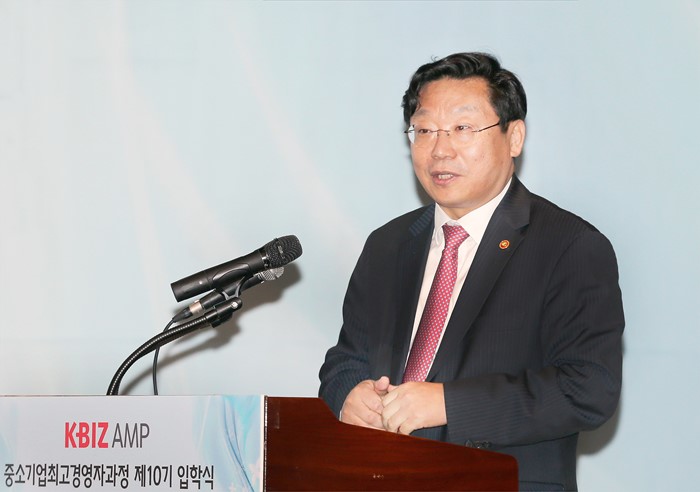 중소기업 최고경영자 과정 입학식 참석, 강연하는 주형환 장관