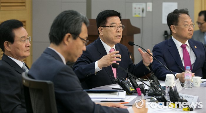 이날 열릴 당정협의에 새누리당에서는 김광림 정책위의장·김도읍 원내수석부대표·김한표(경남 거제) 의원·임이자 당선인 등이, 정부 측에서는 임종룡 금융위원장·최상목 기획재정부 1차관·이관섭 산업통상자원부 1차관·고영선 노동부 차관 등이 참석한다.20일 오전 서울 여의도 국회 의원회관에서 열린 1차 민생경제현안점검회의에 참석한 김광림 새누리당 정책위의장이 모두발언을 하고 있다. 왼쪽부터 변재일 더불어민주당 정책위의장, 김성식 국민의당 정책위의장, 김광림 새누리당 정책위의장, 유일호 경제부총리 겸 기획재정부 장관. 2016.05.20 박동욱 기자