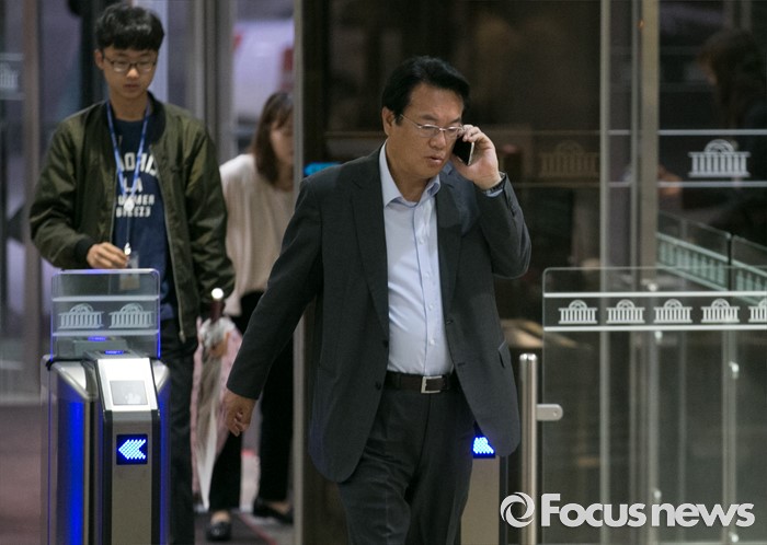 | △ 통화하며 출근하는 정진석 |