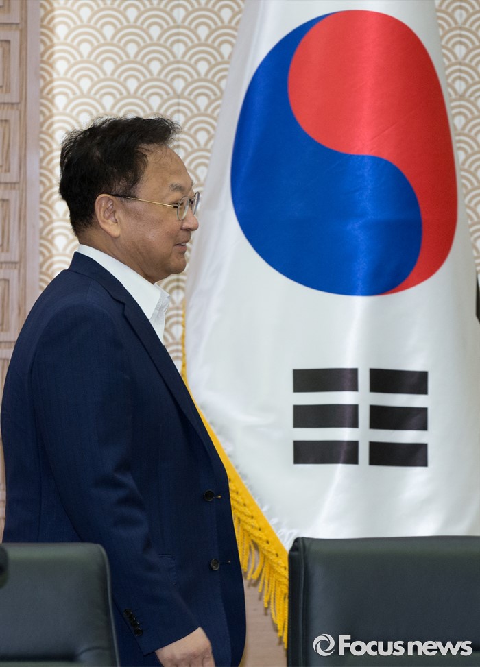 (세종=포커스뉴스) 유일호 경제부총리 겸 기획재정부장관이 24일 오전 세종시 정부세종청사 국무회의장에서 서울-세종 영상회의로 열린 국무회의에 입장하고 있다.