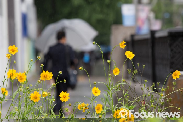 (서울=포커스뉴스) 전국이 흐리고 비가 내리는 24일 오전 서울 마포구 공덕역 인근 거리에서 시민들이 우산을 쓰고 지나가고 있다.