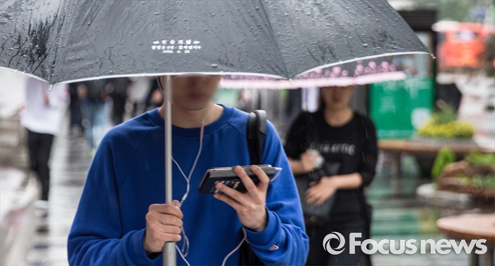 (서울=포커스뉴스) 전국이 흐리고 비가 내리는 24일 오전 서울 강남구 강남역 인근에서 시민들이 발걸음을 재촉하고 있다.