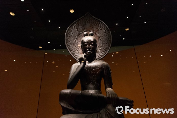 (서울=포커스뉴스) 24일 오전 서울 용산구 국립중앙박물관 기획전시실에서 열리고 있는 '한일국보 반가사유상의 만남' 전시에 일본의 국보 나라현 주구사 목조반가사유상이 전시돼있다.