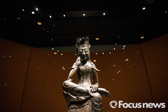 (서울=포커스뉴스) 24일 오전 서울 용산구 국립중앙박물관 기획전시실에서 열리고 있는 '한일국보 반가사유상의 만남' 전시에 우리나라 국보 제78호 금동반가사유상이 전시돼 있다.