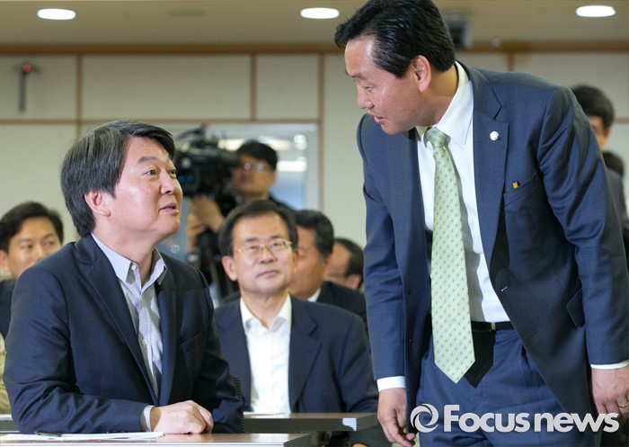 (서울=포커스뉴스) 24일 오전 서울 여의도 국회 의원회관에서 열린 국민의당 6차 정책역량강화 워크숍에 참석한 안철수(왼쪽) 상임공동대표와 김관영 원내수석부대표가 대화하고 있다.