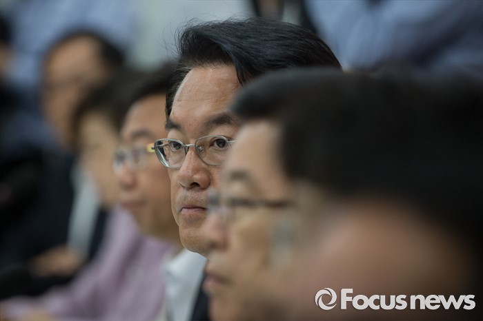 (서울=포커스뉴스) 정진석 새누리당 원내대표가 24일 오전 서울 여의도 국회에서 가습기살균제 피해자들과 면담하고 있다.
