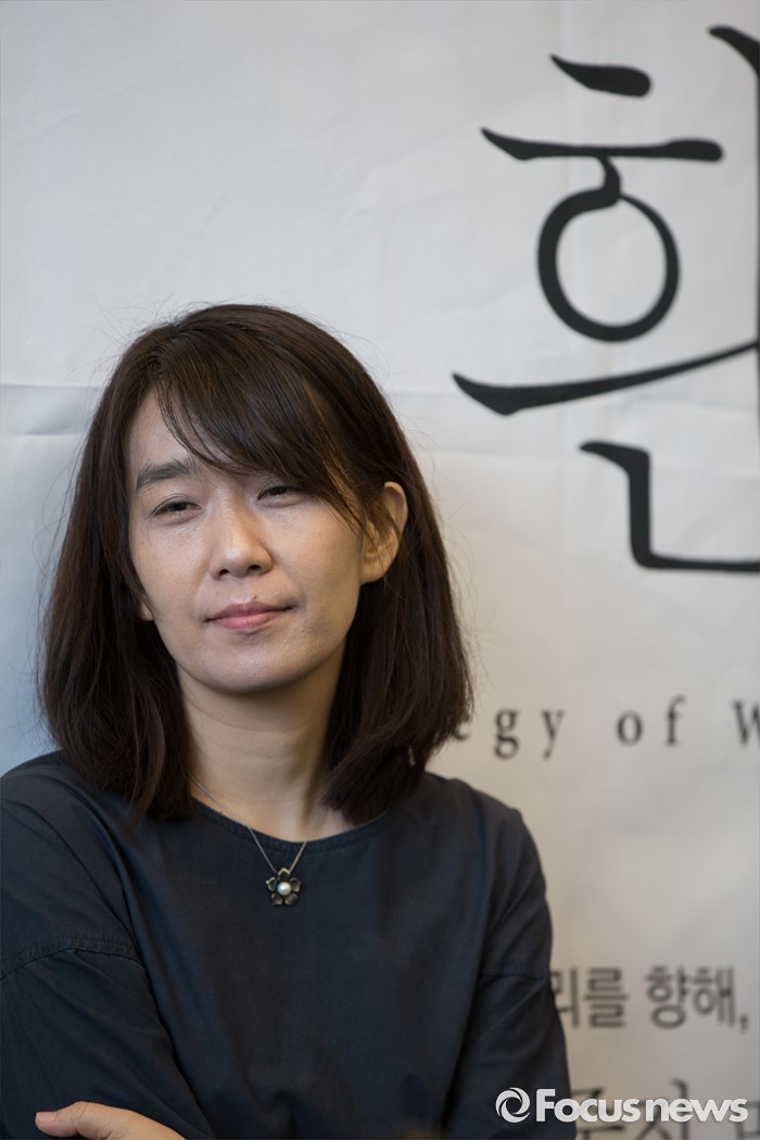 (서울=포커스뉴스) 소설' 채식주의자'로 세계 3대 문학상인 맨부커상을 수상한 한강이 24일 오전 서울 마포구 카페 꼼마에서 열린 신작소설 '흰' 출간 기자간담회에서 포즈를 취하고 있다.