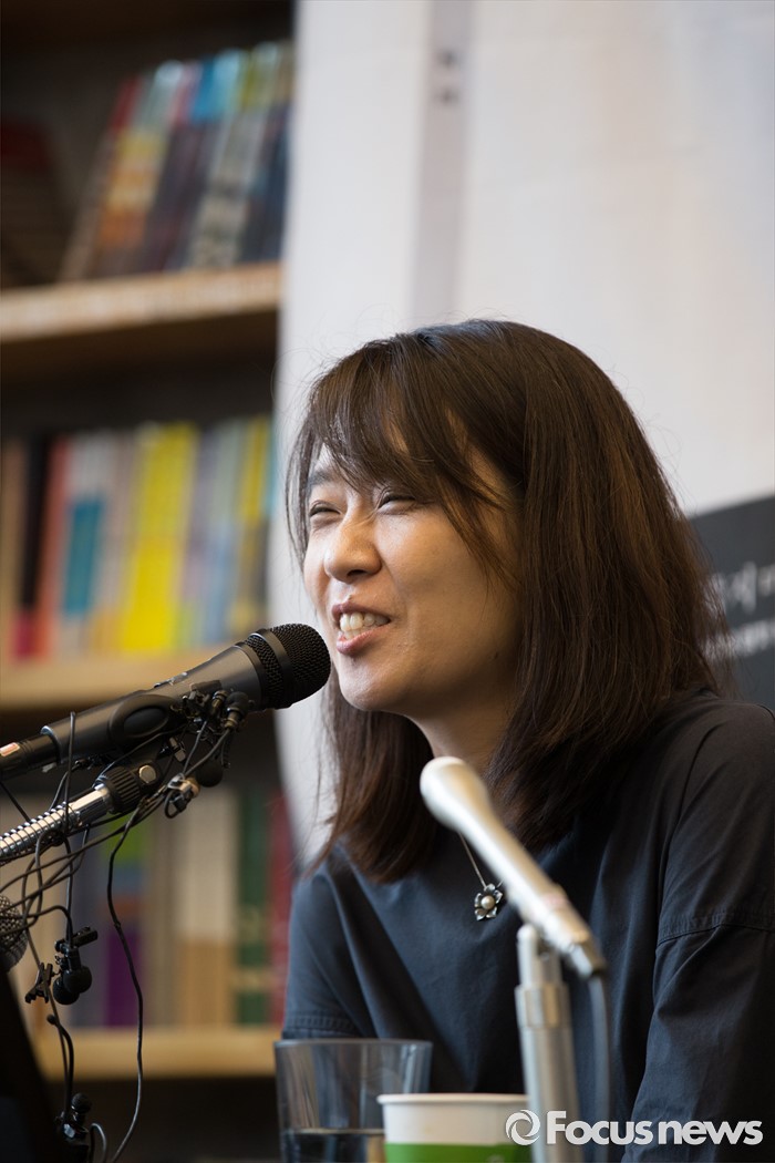 (서울=포커스뉴스) 소설' 채식주의자'로 세계 3대 문학상인 맨부커상을 수상한 한강이 24일 오전 서울 마포구 카페 꼼마에서 열린 신작소설 '흰' 출간 기자간담회에서 취재진의 질문에 답하고 있다.