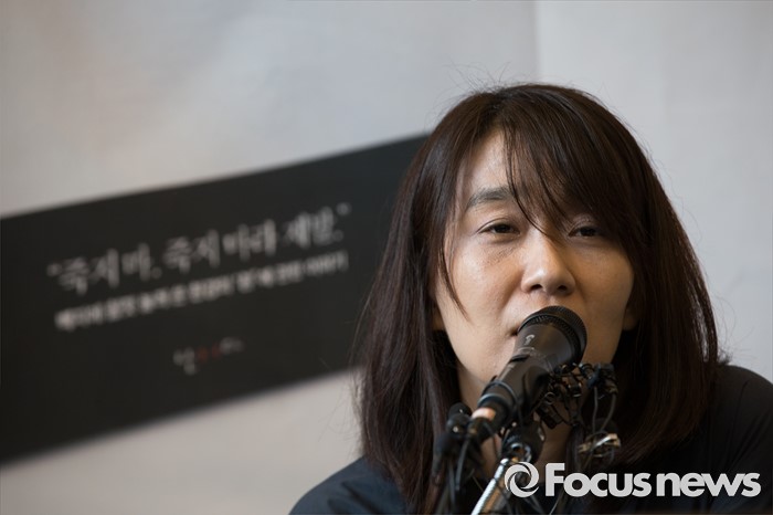(서울=포커스뉴스) 소설' 채식주의자'로 세계 3대 문학상인 맨부커상을 수상한 한강이 24일 오전 서울 마포구 카페 꼼마에서 열린 신작소설 '흰' 출간 기자간담회에서 취재진의 질문에 답하고 있다.