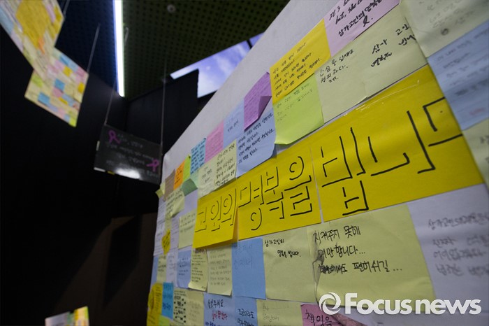 (서울=포커스뉴스) 24일 오전 강남역 인근 주점 화장실 살인사건 피해자 추모 공간이 옮겨진 서울시청 시민청에 추모 쪽지가 전시되어 있다.