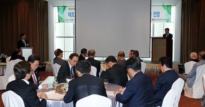 (서울=포커스뉴스) 김용환 원자력안전위원회 위원장이 24일 서울 과학기술연합회에서 열린 제 45차 원자력원로포럼에 참석해 인사말을 하고 있다. <사진제공=원자력안전위원회>