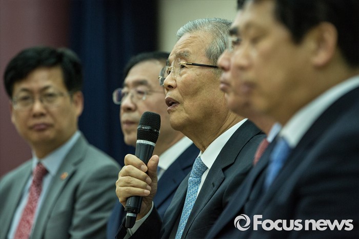 (서울=포커스뉴스) 김종인(왼쪽 세 번째) 더불어민주당 비상대책위 대표가 24일 오전 서울 여의도 국회의원회관에서 열린 '더불어민주당, 지자체장 초청 일자리 정책 콘서트'에 참석해 발언 하고 있다.