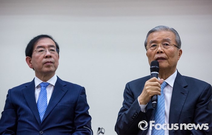 (서울=포커스뉴스) 김종인(오른쪽) 더불어민주당 비상대책위 대표가 24일 오전 서울 여의도 국회의원회관에서 열린 '더불어민주당, 지자체장 초청 일자리 정책 콘서트'에 참석해 발언 하고 있다.