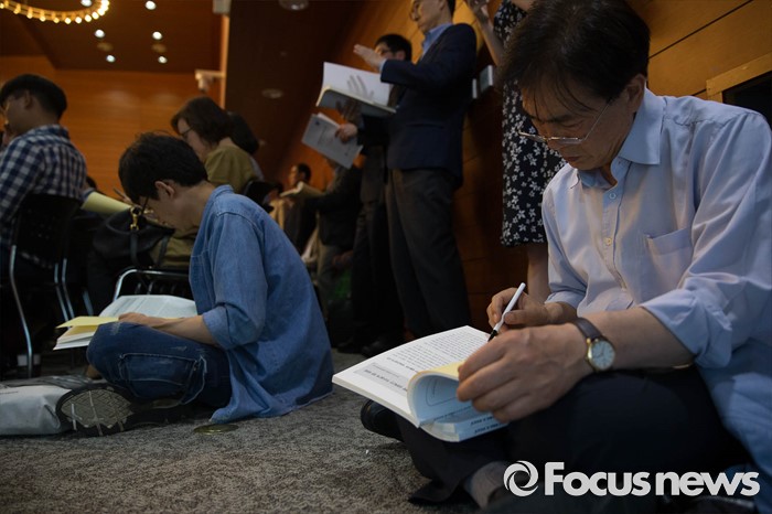 (서울=포커스뉴스) 24일 오후 서울 중구 포스트타워에서 열린 부정청탁 및 금품 등 수수 금지에 관한 법률(일명 김영란법) 입법예고안에 대한 공청회에 참석한 시민들이 안내책자를 보고 있다.