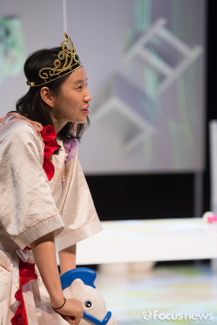 (서울=포커스뉴스) 24일 오후 서울 종로구 CJ아지트 대학로점에서 열린 연극 '크레센도 궁전' 프레스콜에 참여한 배우 김소진이 주요장면을 시연하고 있다.