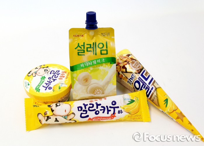 (서울=포커스뉴스) 롯데제과는 24일 쫀득쫀득 말랑카우 바나나바와 월드콘 바나나, 설레임 바나나쉐이크 등 바나나맛 빙과제품 3종을 출시했다.