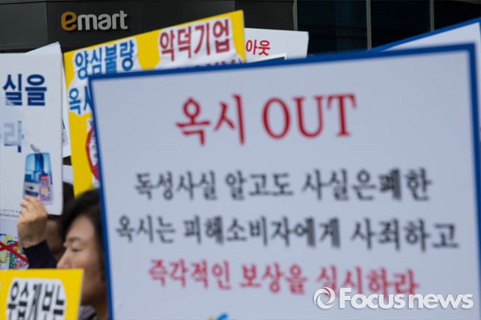 (서울=포커스뉴스) 소비자단체가 대형마트에 옥시 제품 판매 중단을 거듭 촉구했다.