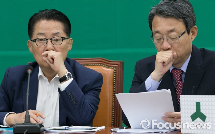 (서울=포커스뉴스) 25일 오전 서울 여의도 국회에서 열린 국민의당 최고위원회의에 참석한 박지원(왼쪽) 원내대표와 김성식 정책위의장이 생각에 잠겨 있다.