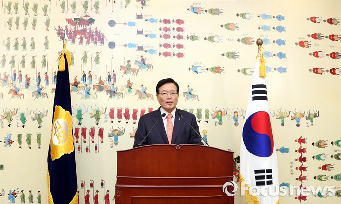 (서울=포커스뉴스) 정의화 국회의장이 25일 오전 서울 여의도 국회에서 퇴임 기자회견을 하고 있다. 오는 29일 임기 종료를 앞둔 정 의장은 이날 회견에서 19대 국회 후반기 국회의장직을 수행하며 느낀 소감 등을 전했다.