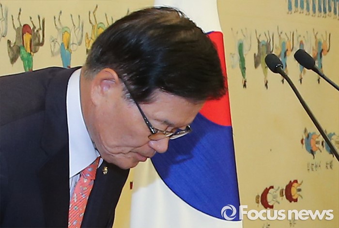 (서울=포커스뉴스) 정의화 국회의장이 25일 오전 서울 여의도 국회에서 퇴임 기자회견 중 허리 숙여 인사하고 있다. 오는 29일 임기 종료를 앞둔 정 의장은 이날 회견에서 19대 국회 후반기 국회의장직을 수행하며 느낀 소감 등을 전했다.