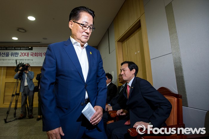 (서울=포커스뉴스) 박지원 국민의당 원내대표가 25일 오전 서울 여의도 국회의원회관에서 열린 '공영언론 지배구조 개선 위한 20대 국회의 역할과 과제 토론회'에 참석해 인사말을 마친 뒤 자리로 돌아가고 있다.