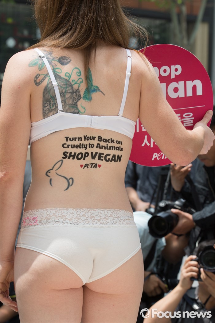 | △ 프라다 매장 앞 퍼포먼스 펼치는 동물보호단체 케어 |