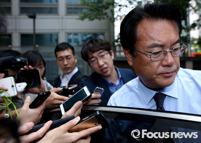 (서울=포커스뉴스) 정진석 새누리당 원내대표가 25일 서울 여의도 당사 앞에서 근무하는 경비중대를 격려 방문해 의경들과 오찬 간담회를 가진 뒤 취재진 질문을 받으며 이동하고 있다.
