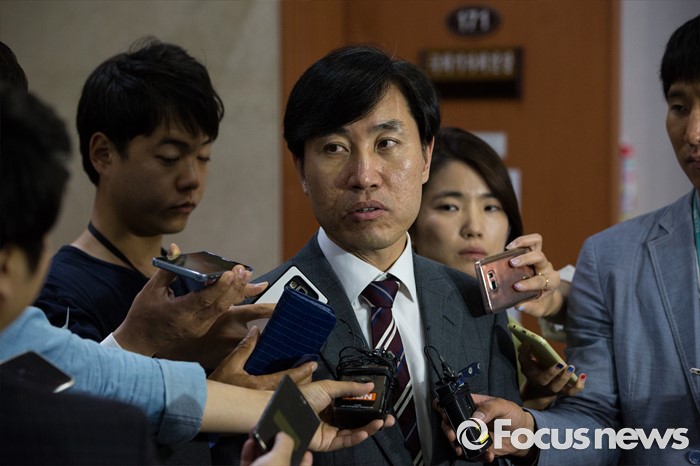 (서울=포커스뉴스) 하태경 새누리당 의원이 25일 오후 서울 여의도 국회에서 정진석 원내대표, 김무성 전 대표, 최경환 의원 등의 3자 회동에 대한 비판 기자회견을 마친 뒤 취재진 질문에 답하고 있다.