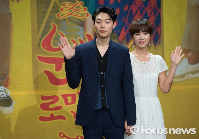(서울=포커스뉴스) 25일 오후 서울 마포구 MBC상암사옥에서 열린 MBC 수목드라마 '운빨로맨스' 제작발표회에 참석한 배우 류준열(왼쪽)과 황정음이 포토타임을 갖고 있다.